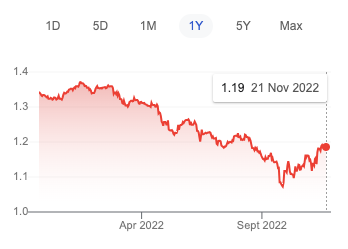 Over the past year the British pound sterling has depreciated significantly against the US dollar.