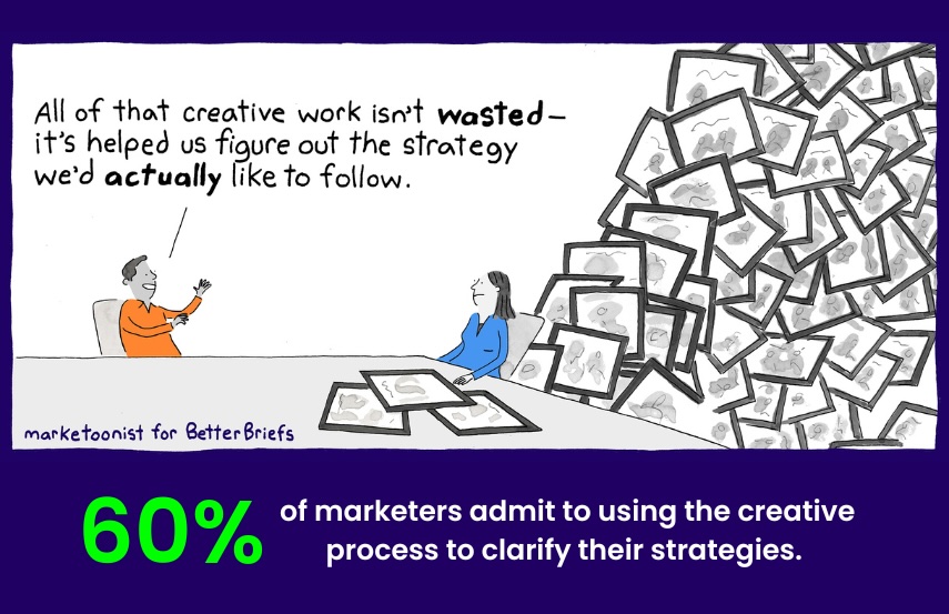 The BetterBriefs Project shows 60% of marketers admit to using the creative process to clarify their strategy. In other words, most briefs don’t have a clear strategy.