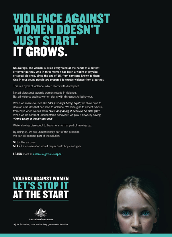 Ad Nut likes how this campaign for domestic violence tries to start with a root cause and something innocent but goes on to show the consequences of disrespectful behaviour toward women. The juxtaposition of child and adult is also quite powerful.