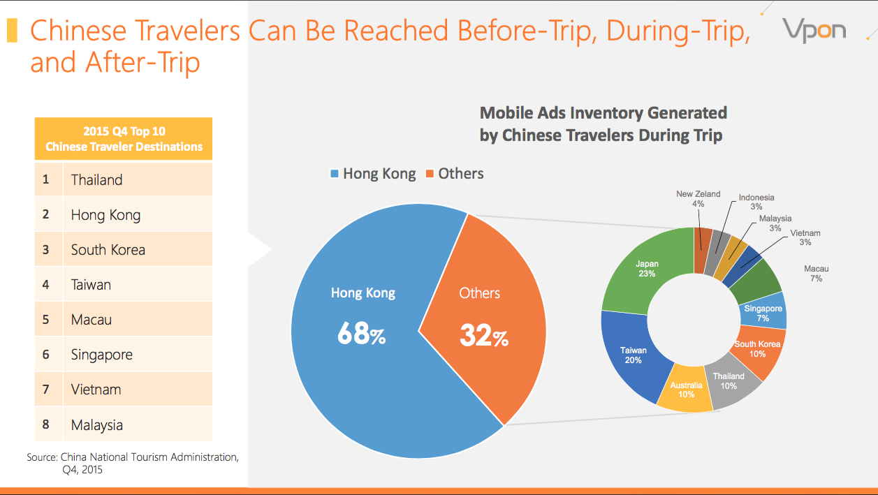 The report on Chinese traveller coincided with the launch of Vpon’s 2016 Asia Pacific Mobile Programmatic Advertising Semiannual Statistics and Trends Report.