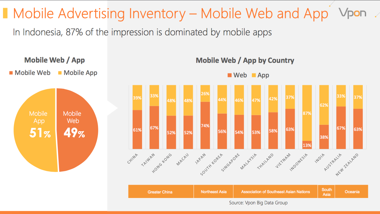 The Indonesian market however has a unique ecosystem: 87 percent of the traffic comes from apps and 90 percent of the apps were from Android.