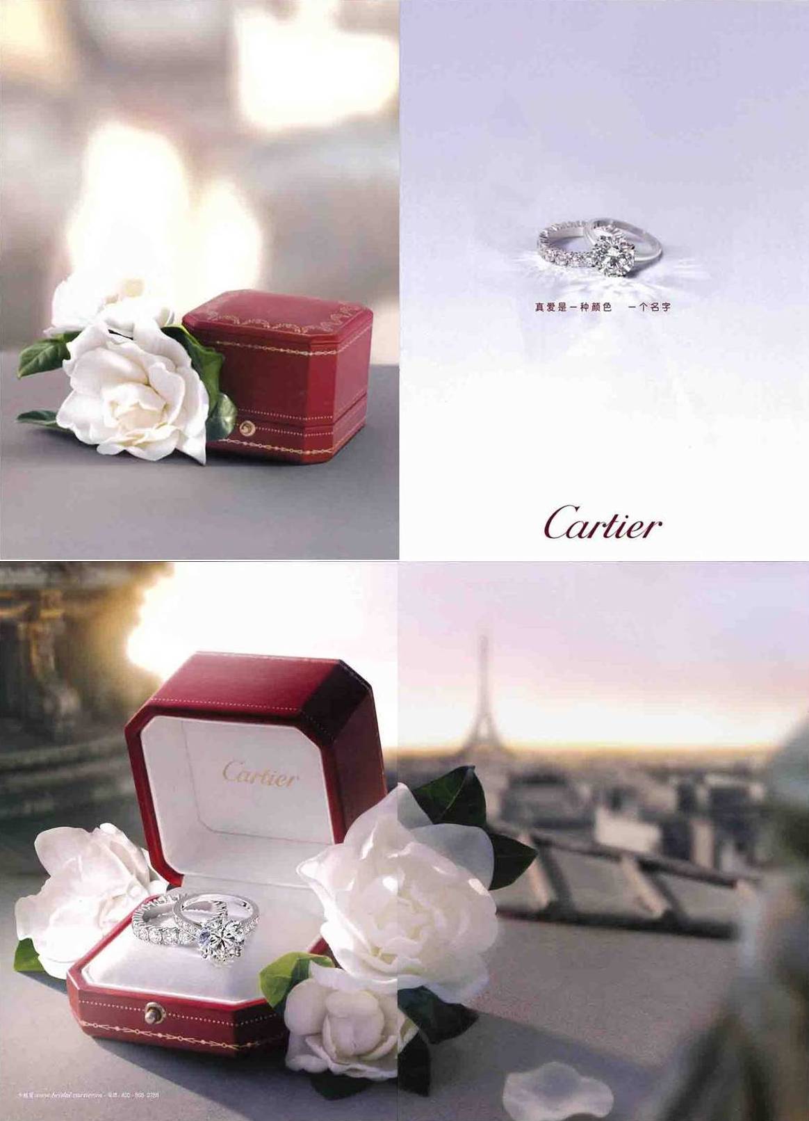 Sometimes less is more, as in this Cartier ad that says true love is a color or a name. More than half of readers surveyed who recalled seeing the ad also sought more information via phone.
