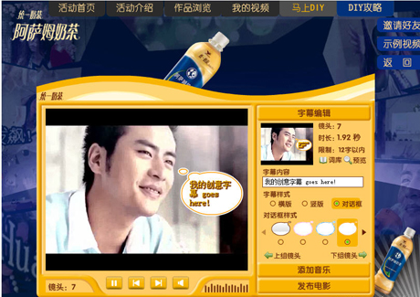 Taiwanese FMCG giant Uni-President has launched a DIY video viral campaign on popular social networking website Kaixin001.com for its milk tea product that allows consumers to take inspiration from an on-going TV commercial.
