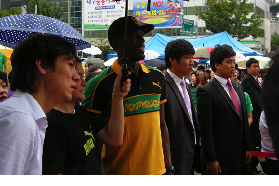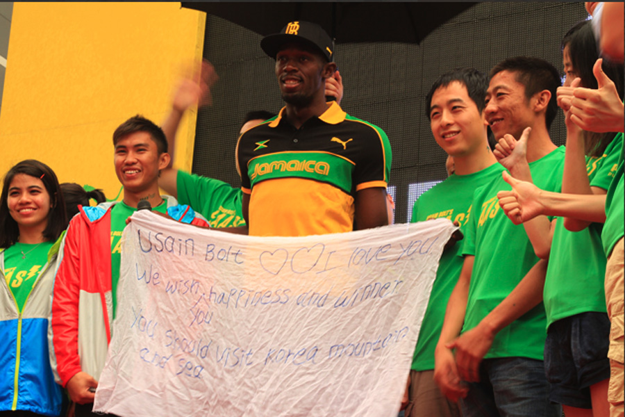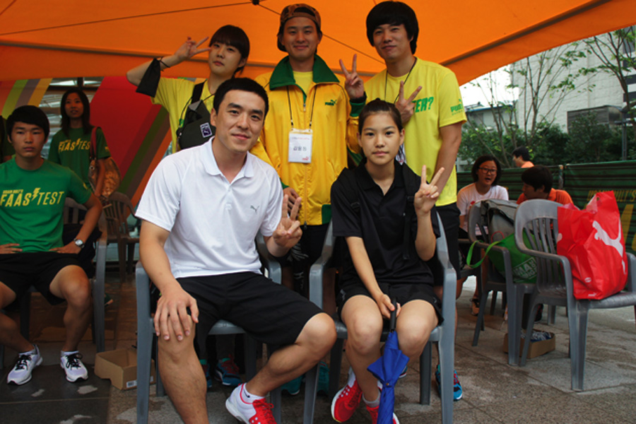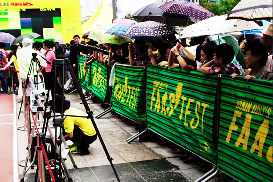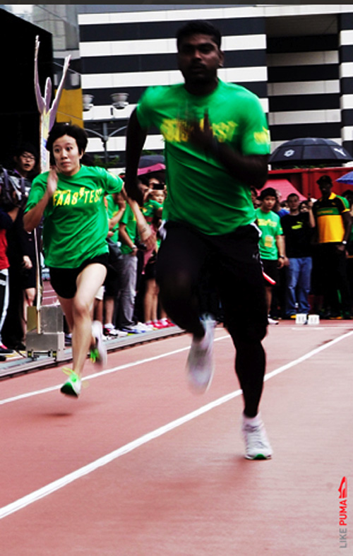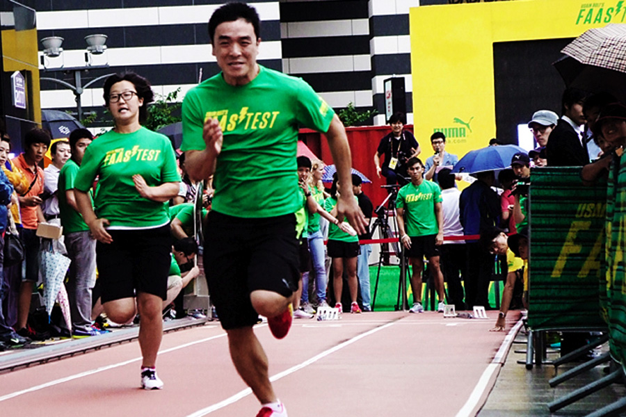 Usain Bolt, the world's fastest man, was in Daegu, South Korea on 20 August, before he competed in the IAAF World Championship there, he helped to crown the winners of the Puma Faas Test Final, a unique street-sprinting challenge where 16 finalists from six countries in the region raced against Bolt's own 100m speed record. The final winners were from Malaysia and Korea who got to meet and chat with their idol and brought home Bolt's autographed Puma running spike shoes and trophy.