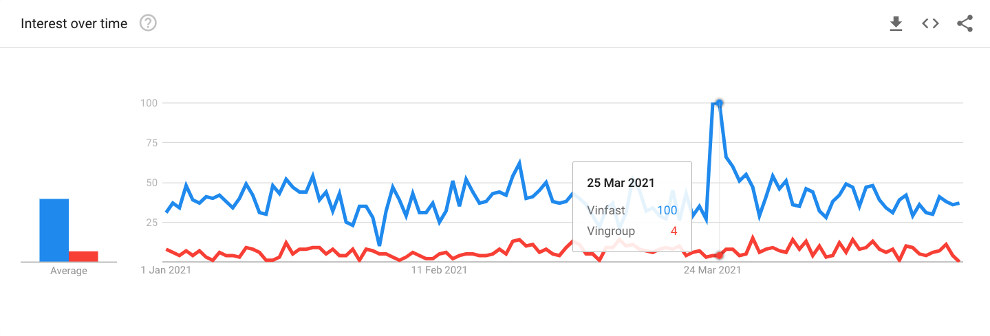 Interest in VinFast spiked on 24 March when it opened sales for its first EV car, according to Google Trends data
