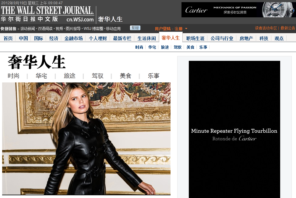 BEIJING - Four months after main competitor FTChinese's launch of a luxury section, the Wall Street Journal's Chinese online edition has followed suit with French jeweller and watchmaker Cartier as its launch advertiser.