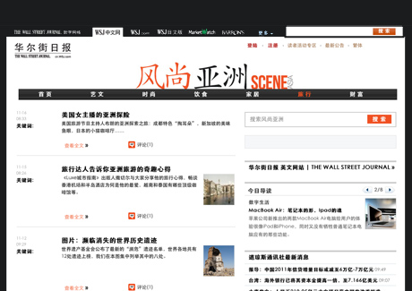 BEIJING - The Wall Street Journal (WSJ) has launched the Chinese edition of Scene Asia online.