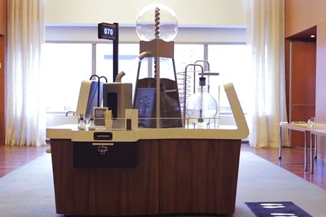 SINGAPORE - The Singapore Economic Development Board (EDB) is sending a unique delegate to trade shows where executives who are looking for business opportunities in Asia congregate: a coffee machine that dispenses the beverage only when two people introduce themselves to get it started.